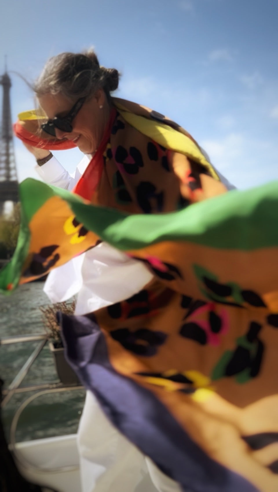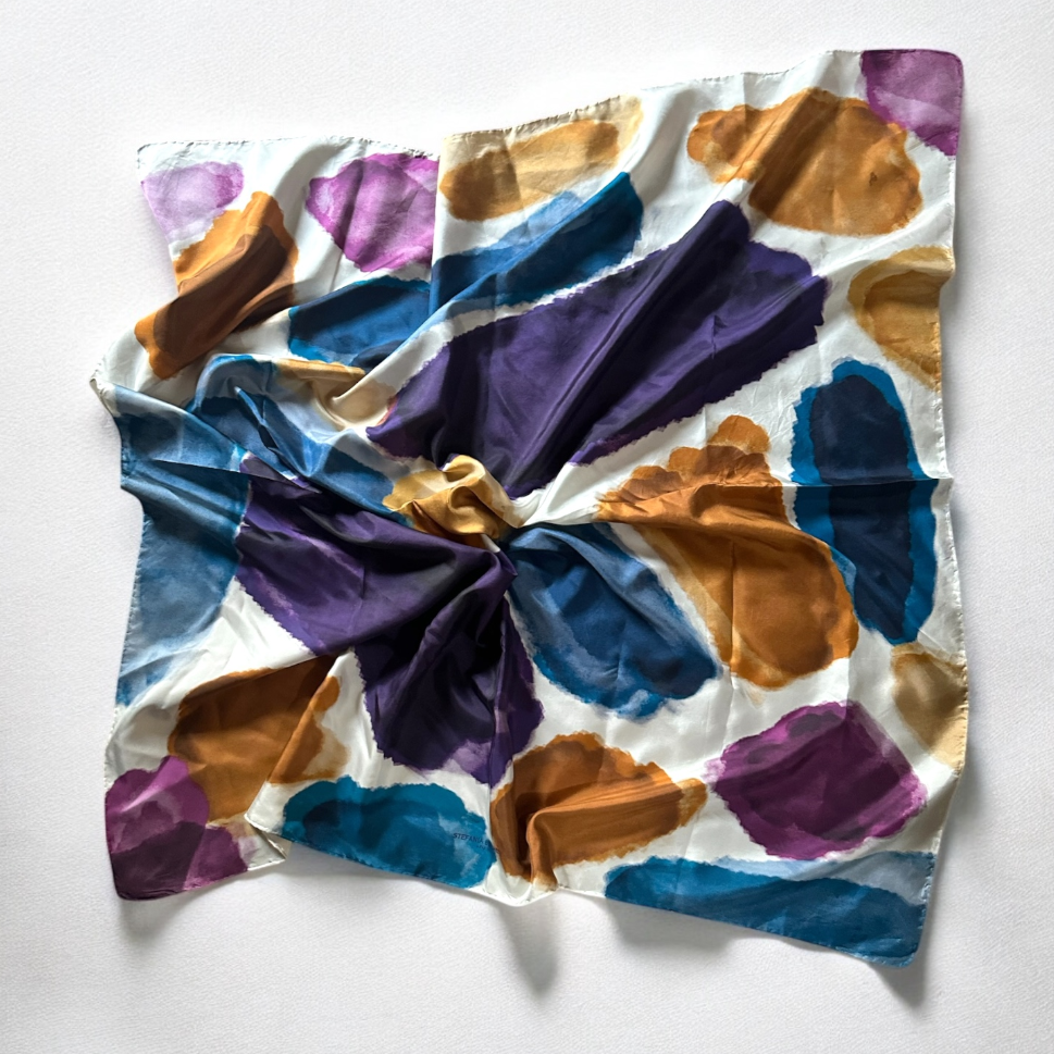 Her scarves blend hand-painted art with Italian craftsmanship, creating timeless pieces for everyday elegance.